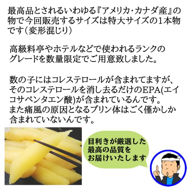 【送料無料⇒品質重視のクール便】【薄皮取り済】(これは卵質の良いアメリカ・カナダ産)セレブのパリッパリ塩数の子1K【卵サイズは大きくないが歯ごたえはOK】(薄皮なし・塩抜要)*北海道・沖縄は別途送料1000円*真空保証はしてません