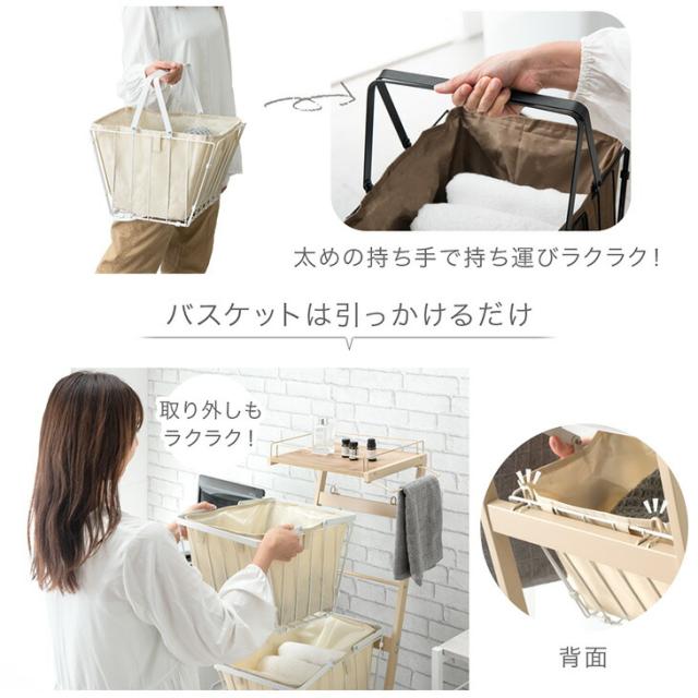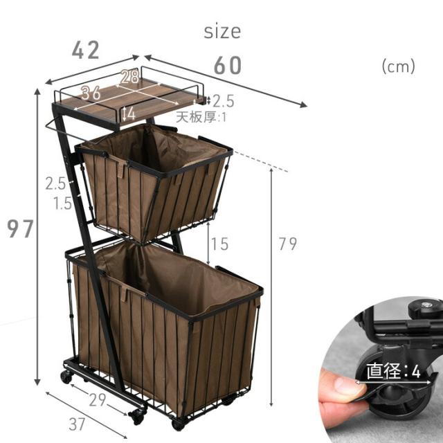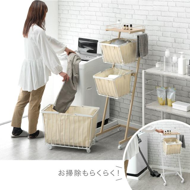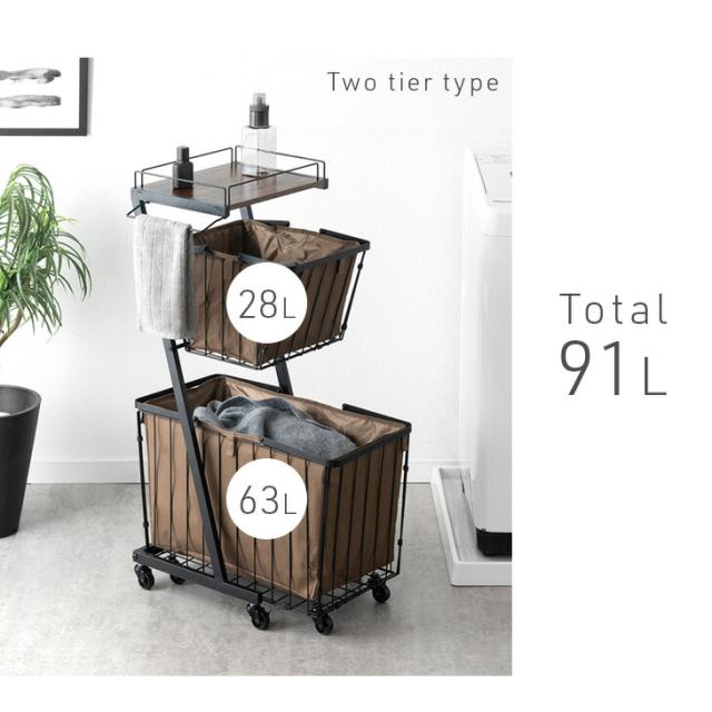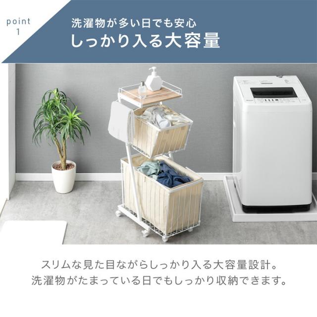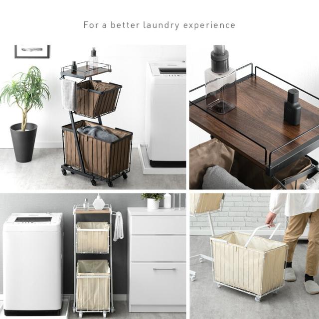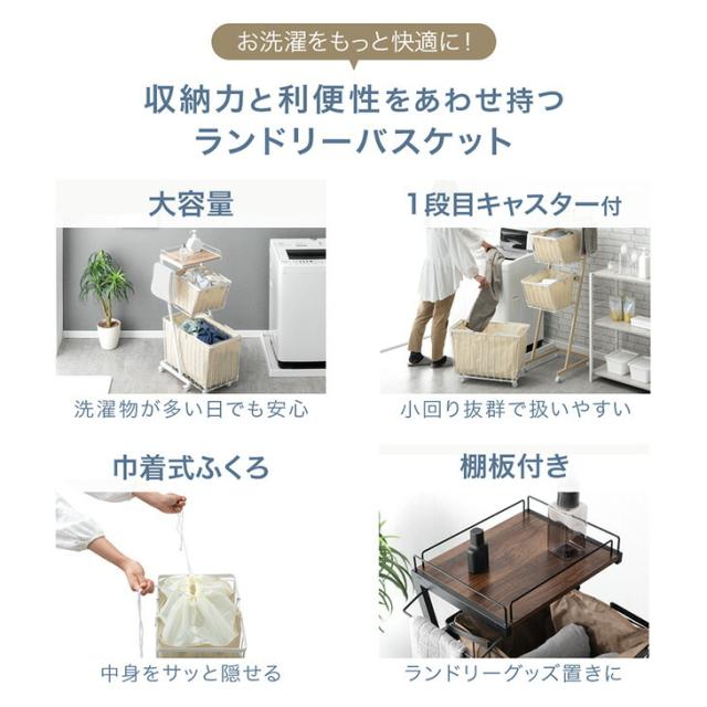 大容量 ランドリーバスケット 袋付き キャスター付き 2段 防水 ランドリーワゴン ランドリーボックス ランドリー収納 ワイヤーバスケット ランドリー バスケット 洗濯かご 洗濯 カゴ スリム 省スペース 洗面所 キャスター