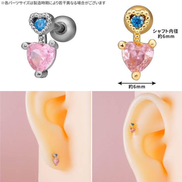 ミニ ピンク ハート ジュエル ストレートバーベル 14G 16G 18G 20G サージカルステンレス ヘリックス 軟骨ピアス ボディピアス
