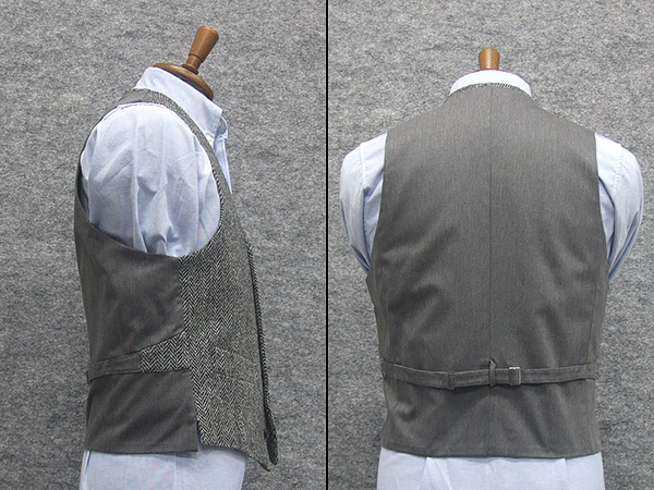 英国生地 [Harris Tweed]ハリスツイード ベスト [A体][AB体] 薄グレー/杉綾 5釦 オッドベスト HTV620-15