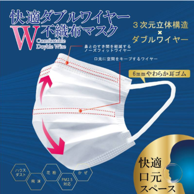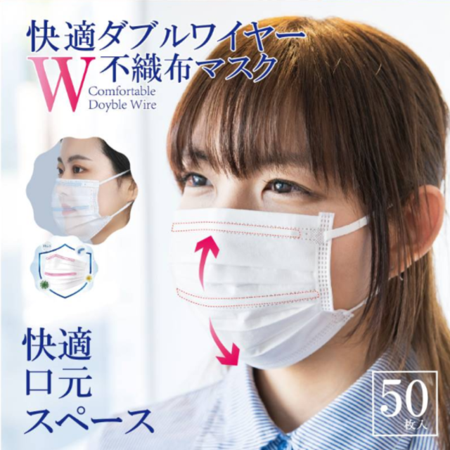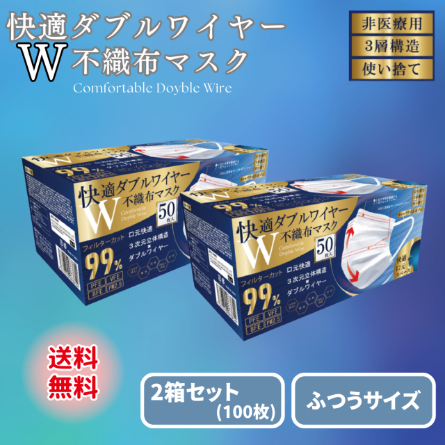 快適ダブルワイヤー 不織布マスク50枚入り ふつうサイズ 【2箱セット】