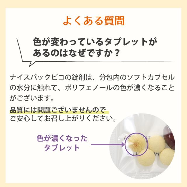 ・ソフトカプセルの水分により粒の表面の色が部分的に濃くなることがありますが、品質には影響はありません。