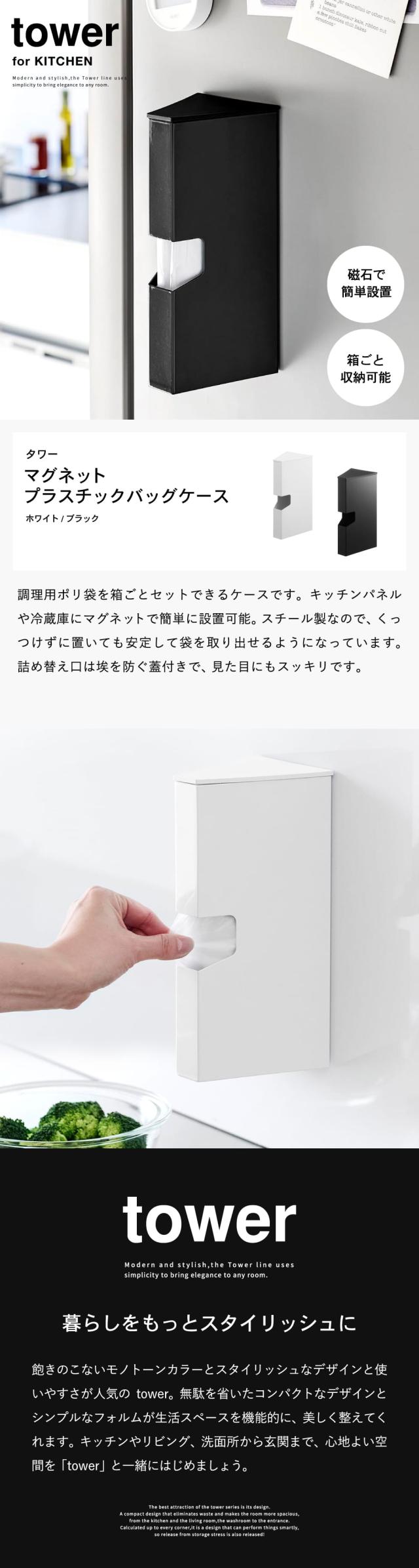 山崎実業 公式 tower マグネットプラスチックバッグケース タワー 1616 1617 ホワイト ブラック アイラップ収納 アイラップケース 冷蔵庫横 調理用ポリ袋 ナイロン袋 保存 冷凍 冷蔵 湯煎 タワーシリーズ yamazaki JGS