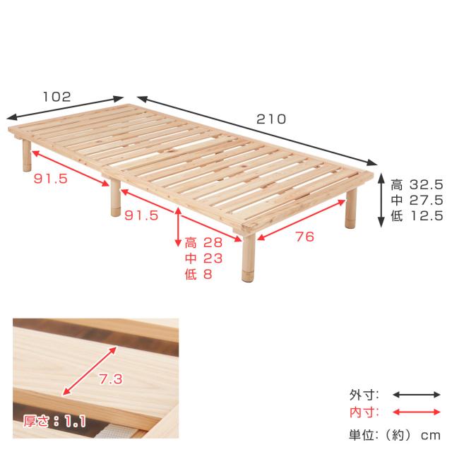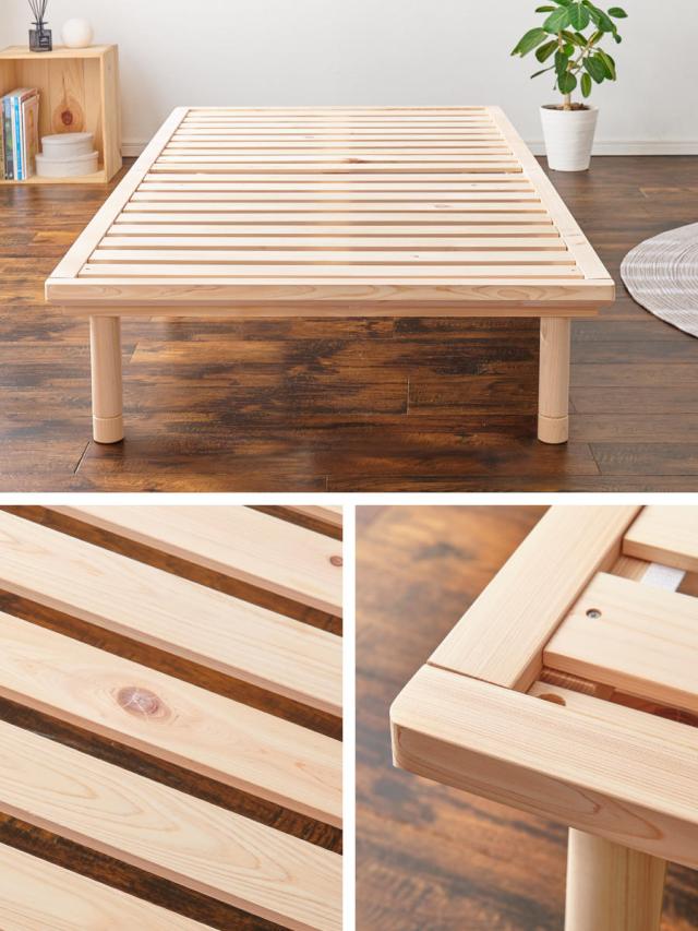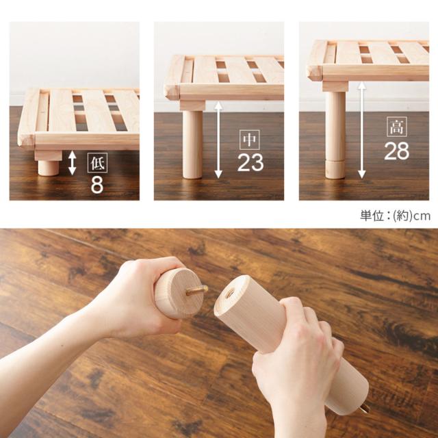 ステージベッド シングル ロングタイプ 天然檜 すのこ 敷布団 ( ベッド 高さ調節 ロング ひのき 天然木 ベッドフレーム 敷布団OK シングルロング すのこベッド 抗菌 調湿 防虫 )