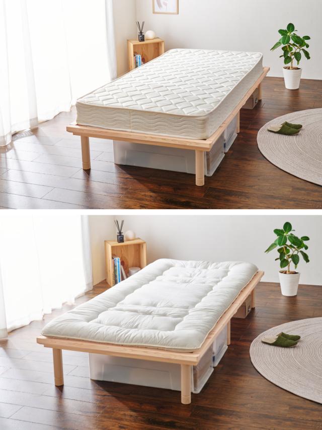 敷布団、マットレスどちらでも使えます。お手持ちの布団がそのまま使えるので経済的です。