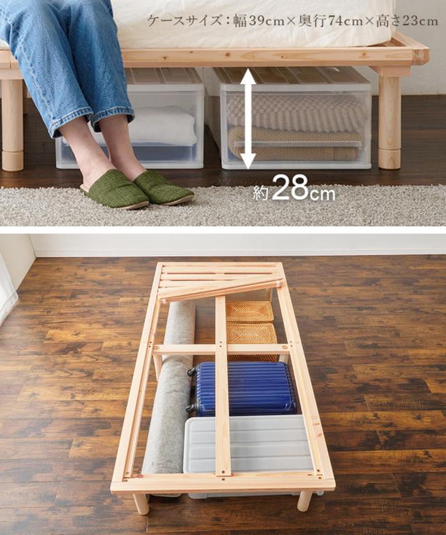 ベッド下は収納スペースとしてお使いいただけます。収納ケースの他、キャリーバッグやラグ、布団などの季節用品や使用頻度の低い物の収納にもぴったりです。