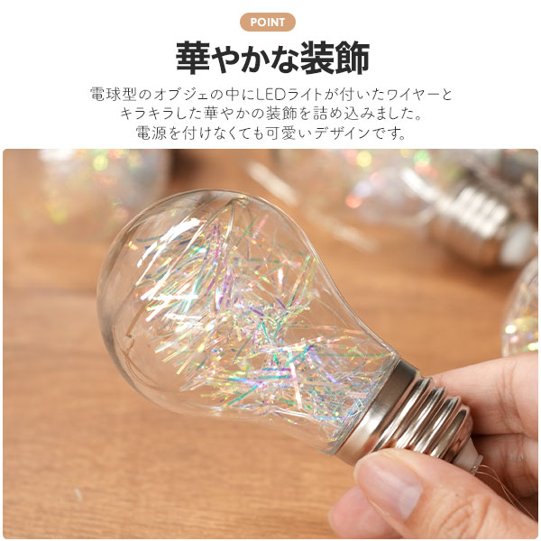 ※ワイヤーを引っ張ったり、強い力や衝撃を与えると電球型のオブジェからワイヤーが抜けてしまう場合があります。取り扱いにご注意ください。