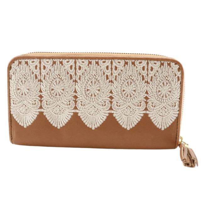 Endymion Spring エンディミオン・スプリング 本革刺繍 ラウンドファスナー 茶色 長財布