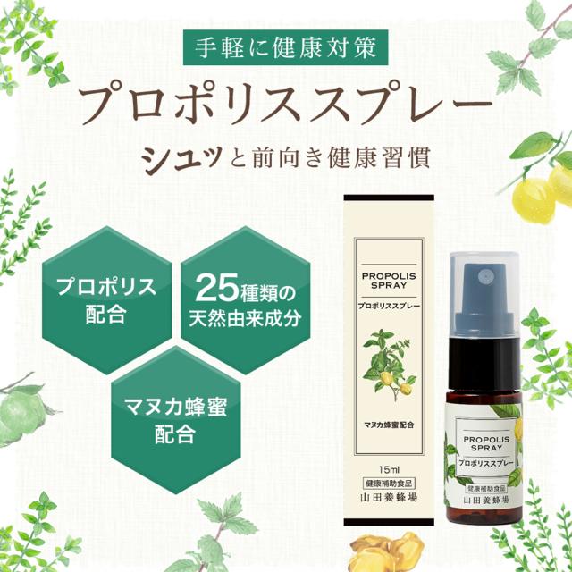 山田養蜂場 プロポリススプレー 15ml マヌカ蜂蜜入り プロポリス スプレー マヌカハニー MANUKA サプリメント サプリ 液体 健康食品 イガイガ 乾燥 さっぱり すっきり 受験生 健康 冬 エアコン対策 お試しサイズ コンパクト 持ち運び ギフト プレゼント ホワイトデー