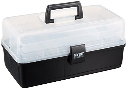 アイリスオーヤマ マイキット 幅37cm*奥行20cm*高さ18cm 工具収納 工具箱 ケース クリアブラック 万能ケース 収納ボックス ツールボックス DIY アウトドア キャンプ 小物入れ 2段式トレー