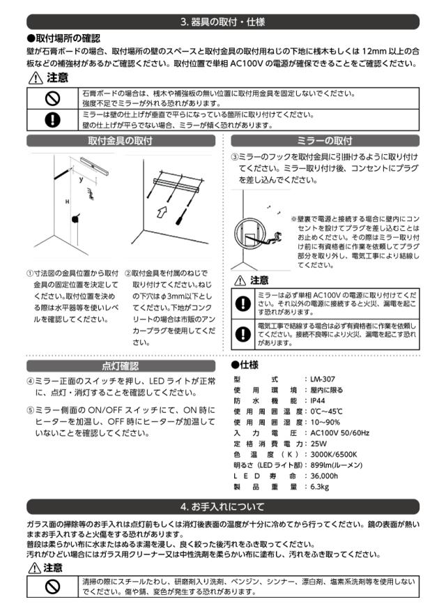 IP44 ※本製品は防水仕様ではありません。 破損や事故の原因となりますので浴室など、水のかかりやすい場所には取り付けないでください。 | |
