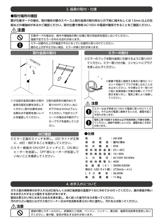 IP44 ※本製品は防水仕様ではありません。 破損や事故の原因となりますので浴室など、水のかかりやすい場所には取り付けないでください。 | |
