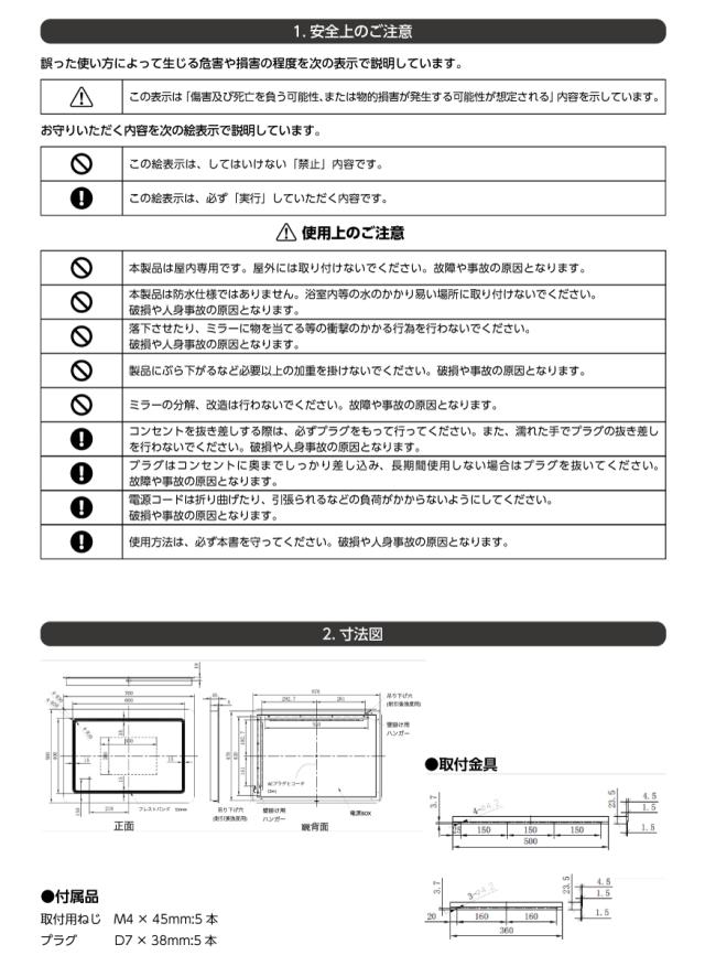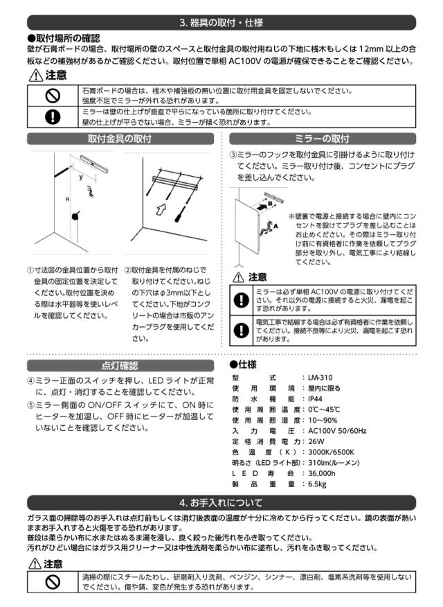 IP44 ※本製品は防水仕様ではありません。 破損や事故の原因となりますので浴室など、水のかかりやすい場所には取り付けないでください。 | |