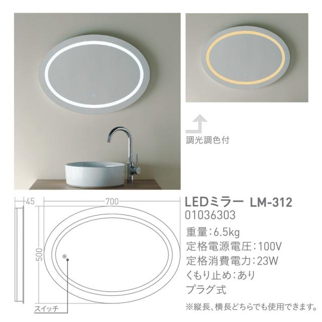 Mizunohana LEDミラー 曇り止め機能付き 調光調色 PSE認定品 洗面台 洗面鏡 化粧室 美容室 LM-312 宅配便のみ