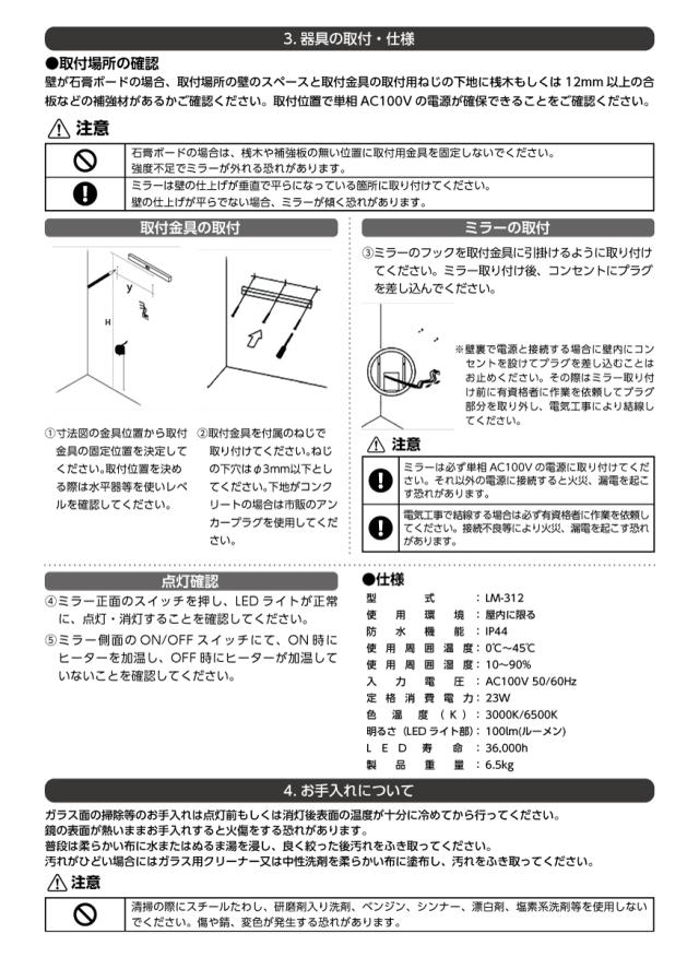 IP44 ※本製品は防水仕様ではありません。 破損や事故の原因となりますので浴室など、水のかかりやすい場所には取り付けないでください。 | |