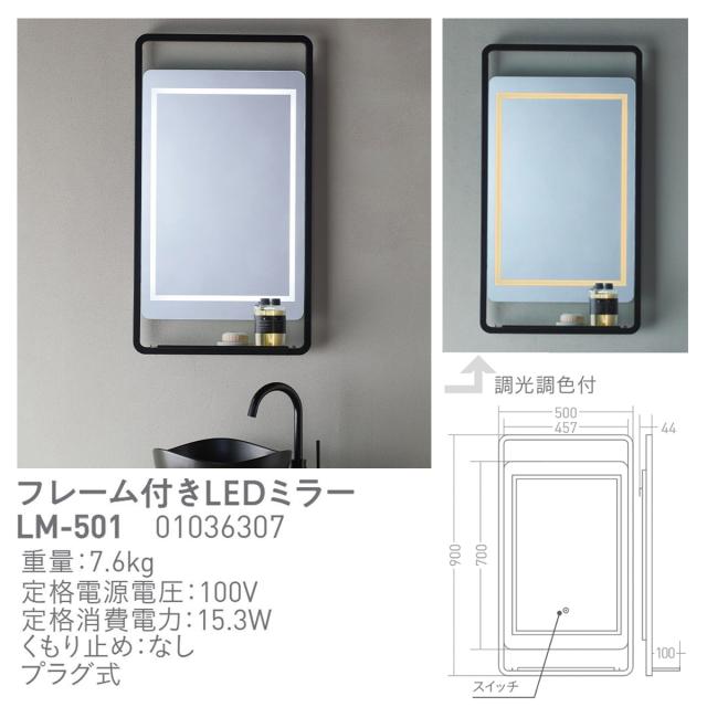Mizunohana フレーム付きLEDミラー 調光調色 洗面台 洗面鏡 化粧室 美容室 LM-501 宅配便のみ