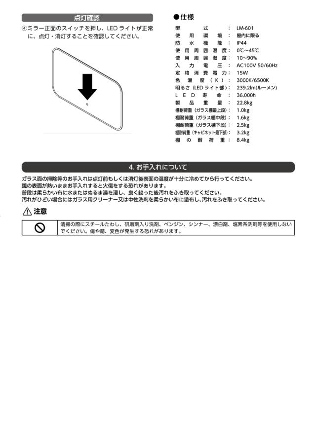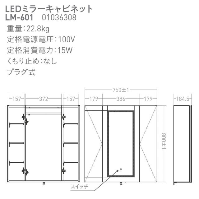 Mizunohana LEDミラー キャビネット 調光調色 洗面台 洗面鏡 化粧室 美容室 LM-601 宅配便のみ