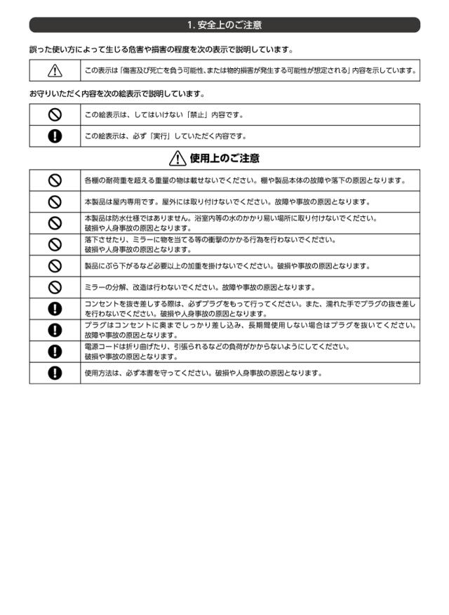 IP44 ※本製品は防水仕様ではありません。 破損や事故の原因となりますので浴室など、水のかかりやすい場所には取り付けないでください。 | |