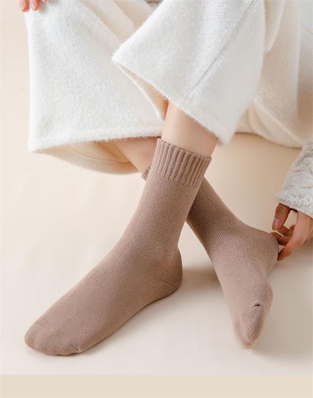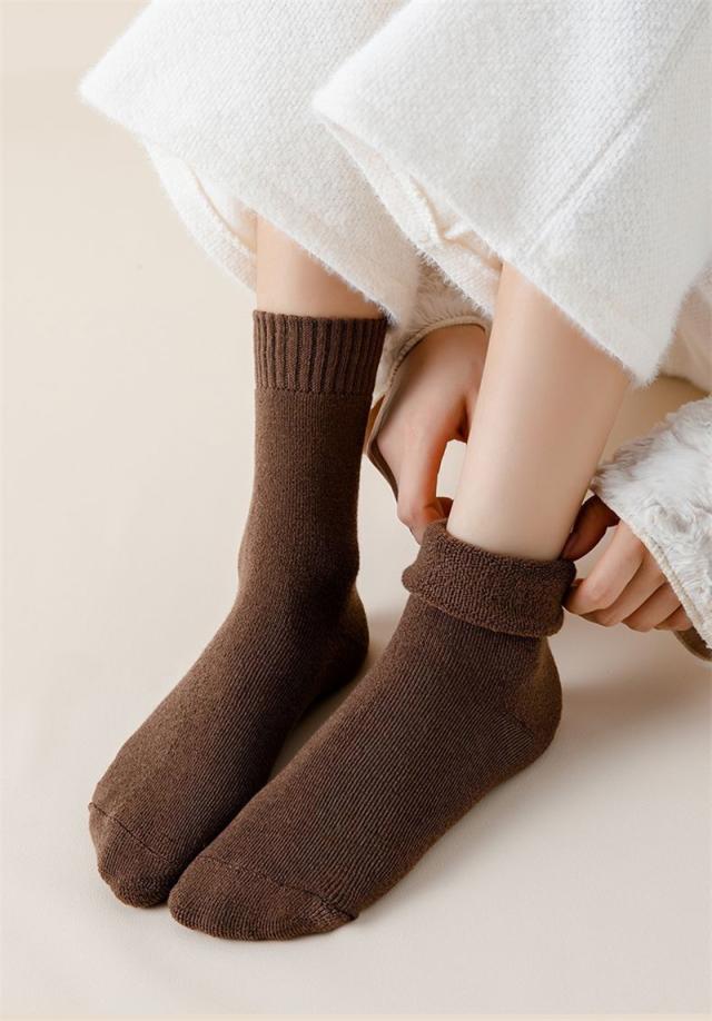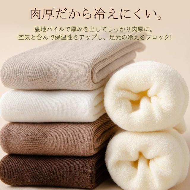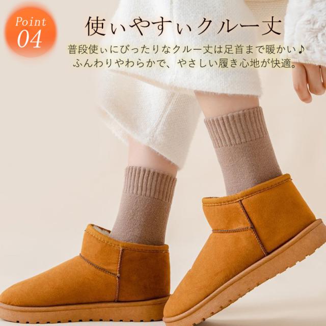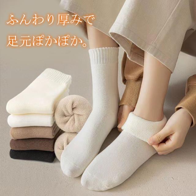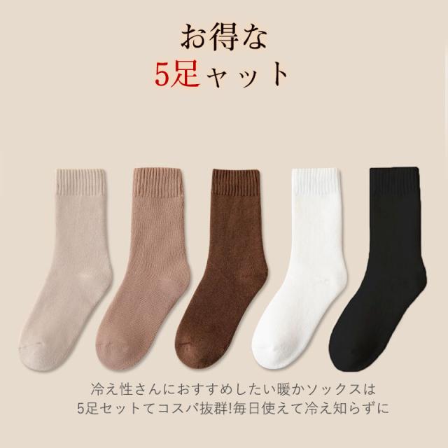 靴下 レディース 5足セット ソックス クルー丈 冬 暖かい 厚手 無地 冷え対策 冬用 冷えとり 冷房対策 保温 防寒 冬用 冷