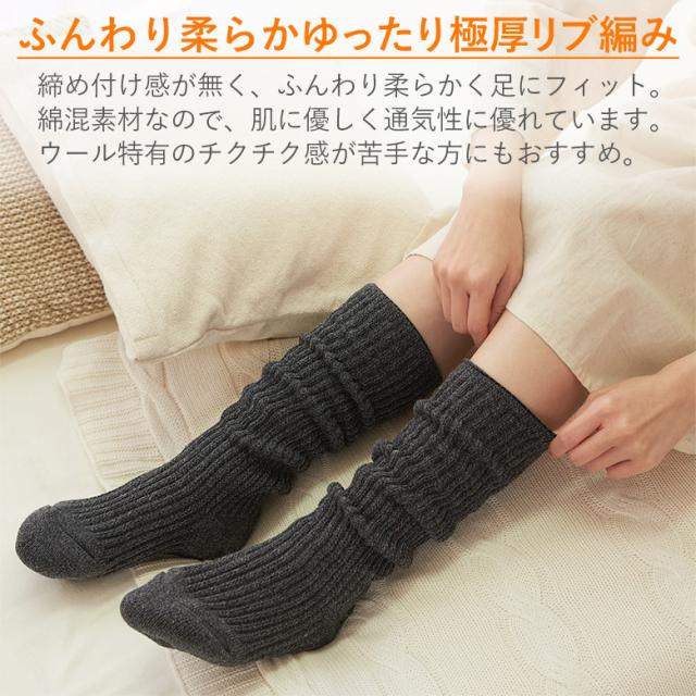 滑り止め ルームソックス レディース 厚手 超厚手 極厚 リブ編み 暖かい靴下 履く毛布 もこもこ ポカポカ 先丸ソックス 先丸靴下 ゆったり 冷え 冷え性 あったか 防寒 履き口ゆったり 締め付けない靴下 柔らかい 日本製 プレゼント ギフト