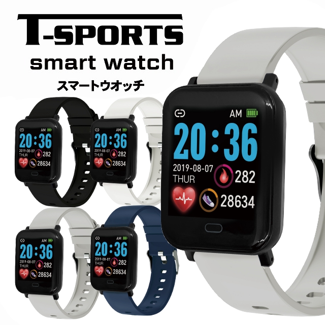 T-SPORTS ティースポーツ スマートウォッチ TS-SMW002-BK TS-SMW002-GR TS-SMW002-NV TS-SMW002-WT クレファー CREPHA
