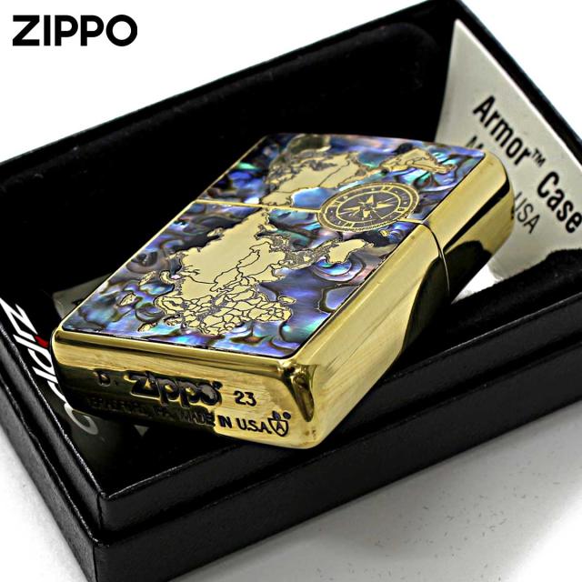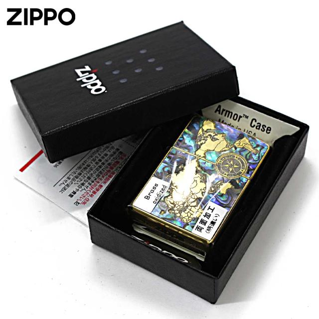 Zippo ジッポライター アーマー シェル 貝 地図 ワールドマップ ARMOR SHELL WORLD MAP ブラスいぶし BO メール便専用商品