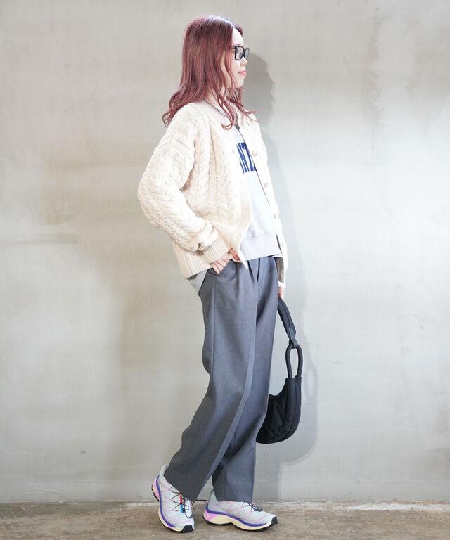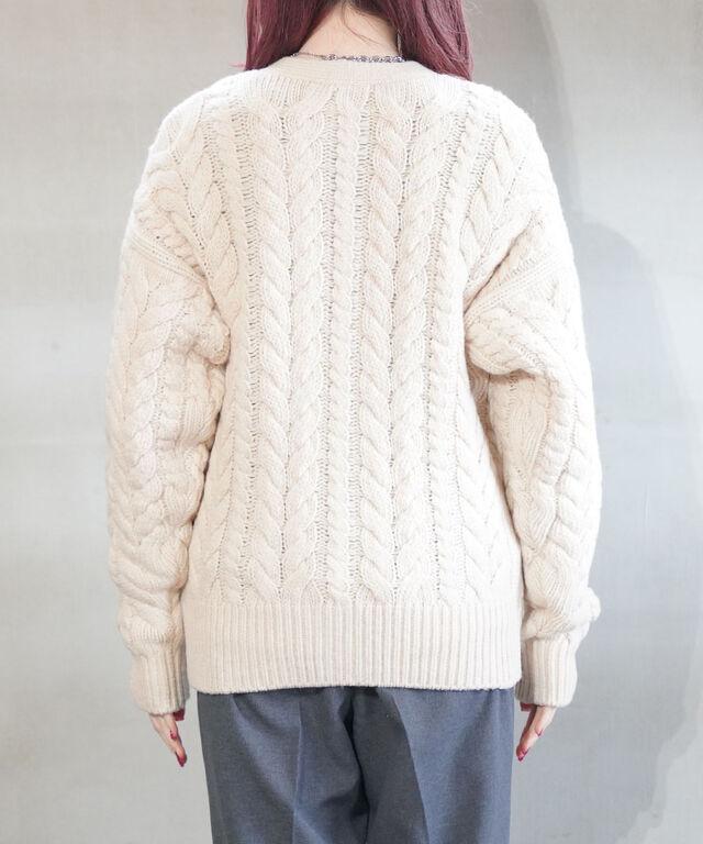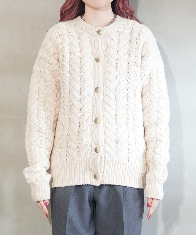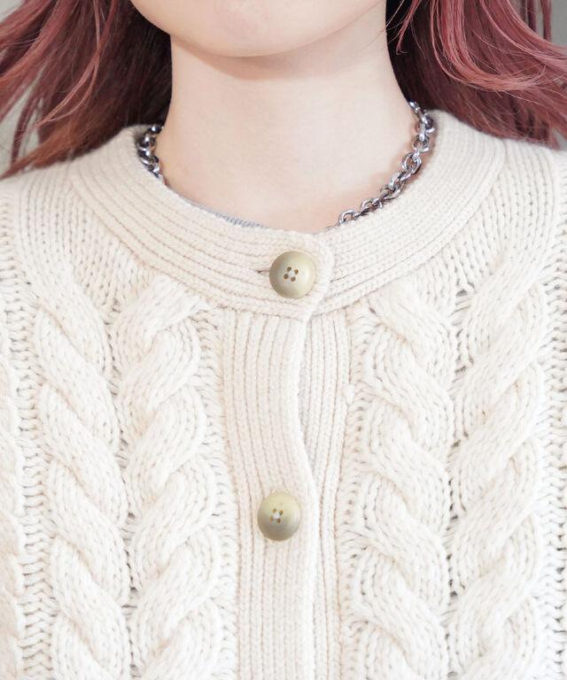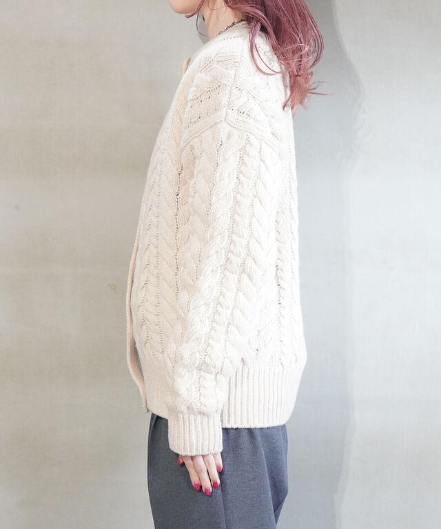 ざっくりとしたケーブル編みがかわいいニットカーディガンです。