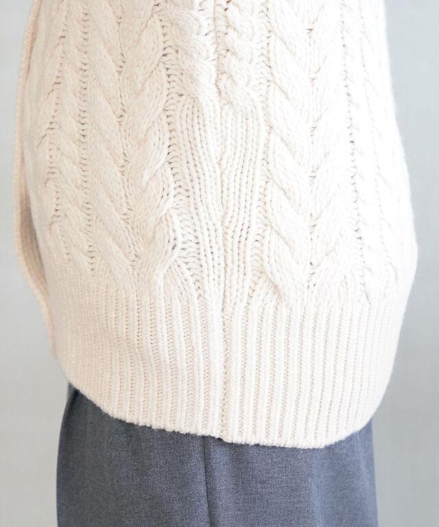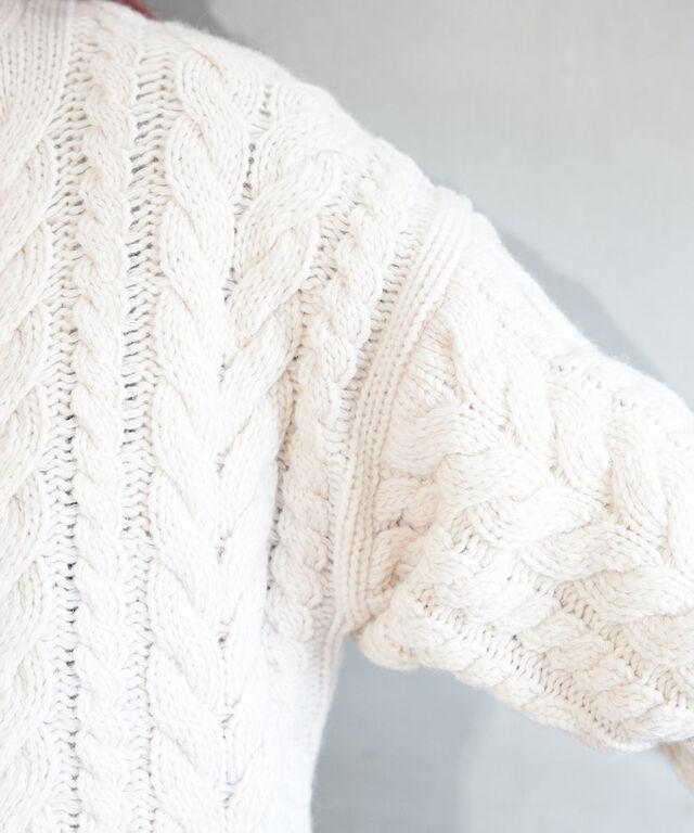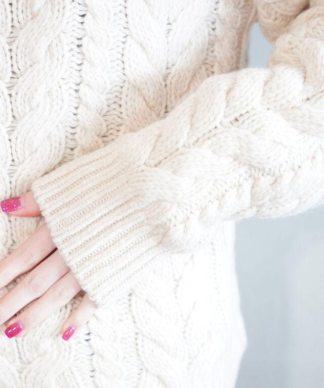 立体感のあるケーブル編みがほっこり温かみのある印象です。