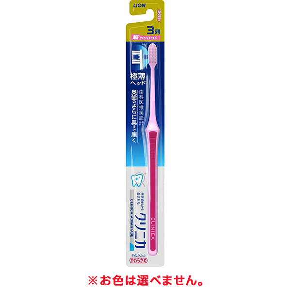【ゆうパケット配送対象】[ライオン]クリニカ アドバンテージ ハブラシ3列 超コンパクト やわらかめ ※色は選べません 1本 (歯ブラシ ・
