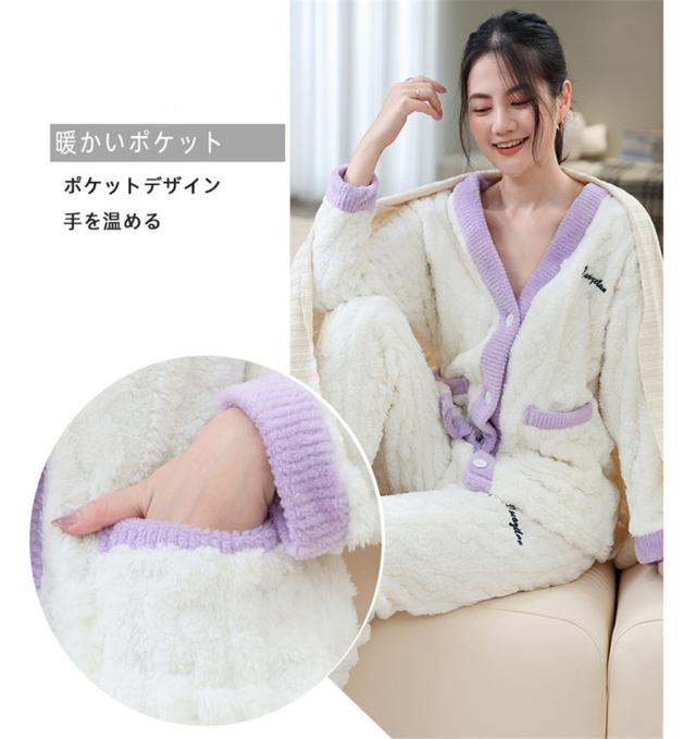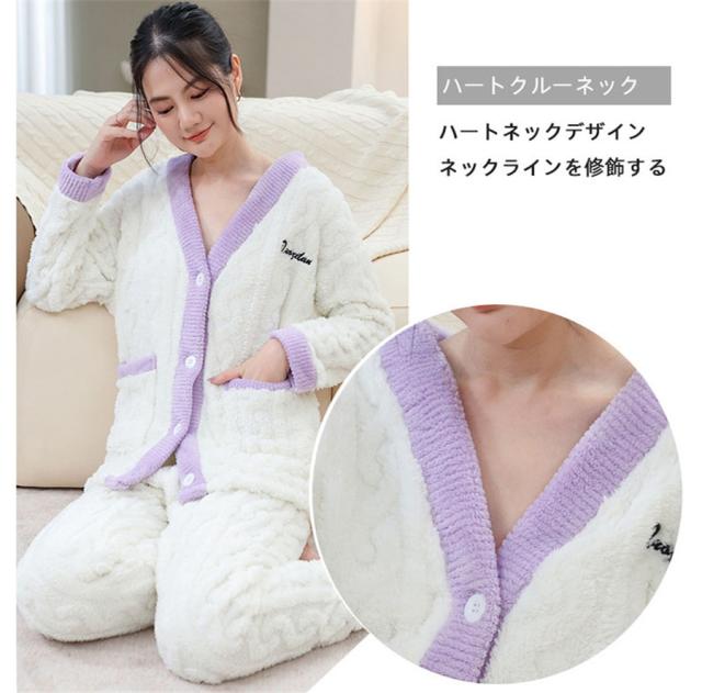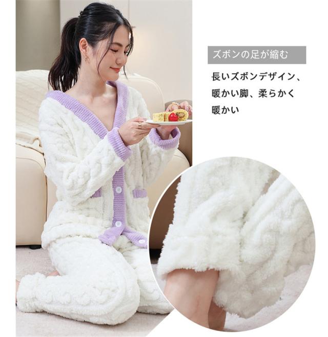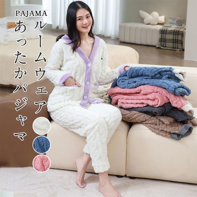 パジャマ レディース ルームウェア あたたかい かわいい 長袖 着心地 長ズボン 春 秋 冬 無地 リラックス 上下セット 寝巻
