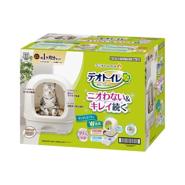・ニオわない&キレイ続く※1¥n・99.9%抗菌※2¥n・シートとサンドでW消臭¥n・撥水で足元サラサラ清潔¥n・シートは週1回※1、サンドは月1回交換※1でお手入れカンタン¥n※1愛猫1頭(体重8kgまで)のデオトイレ使用時。ウンチをした場合は早く取り除いてください。¥n※2第三者機関による消臭・抗菌サンド、消臭・抗菌シートの抗菌性試験結果。すべての菌を抑制するわけではありません。