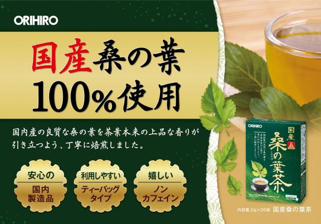 本品は桑の葉100%の使いやすいティーバッグタイプのお茶です。国産の桑の葉を原料に、国内の工場で製品化していますので、食品の安全が気になる方にも安心してご利用いただけます。ノンカフェインですので、お休み前のリラックスタイムにもおすすめです。毎日の健康管理にお役立ていただけます。