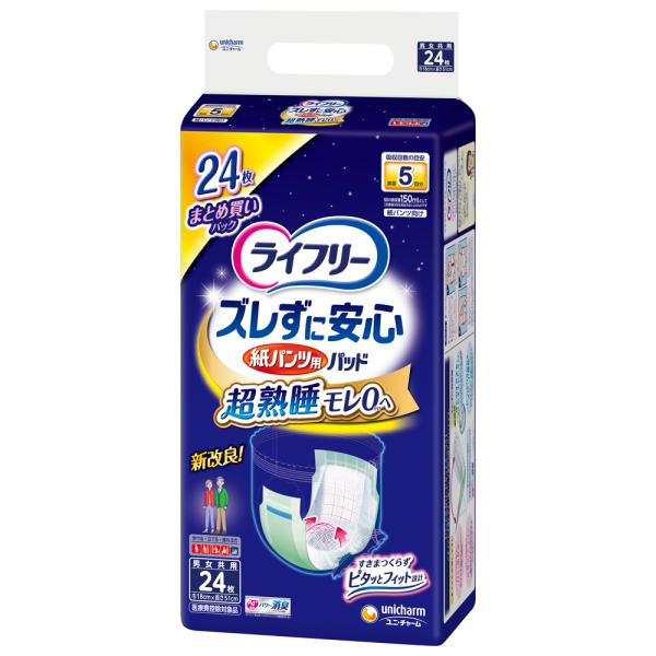 ライフリー ズレずに安心 紙パンツ用尿とりパッド 夜用スーパー 男女共用24枚入/ ライフリー ズレずに安心 介護オムツ 大人用紙おむつ 尿とりパッド(4903111928507)