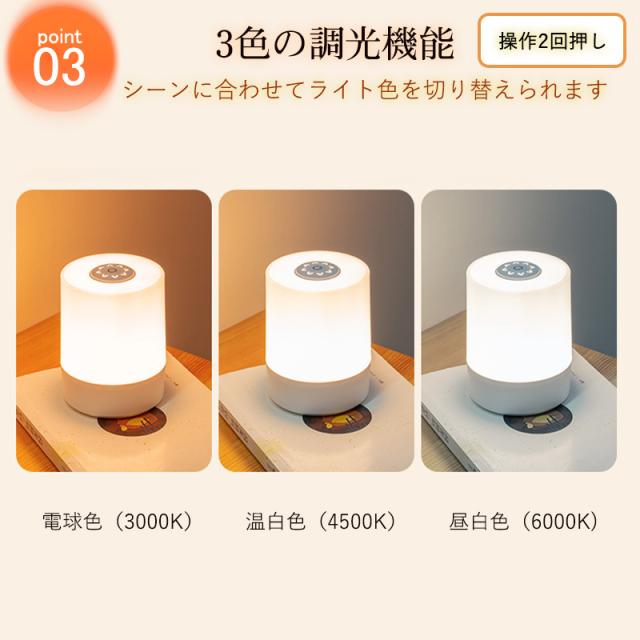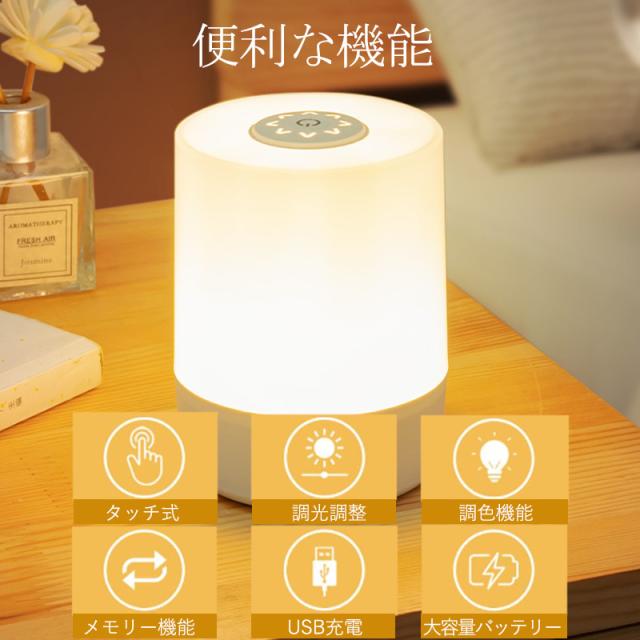 ナイトライト 授乳ライト 卓上ライト 常夜灯 コードレス ベッドライト ベッドサイドランプ 子供部屋 寝室 屋外 キャンプ 持ち運び ルームライト 間接照明 ベッドライト LED 色温度/明るさ調節 USB充電式 出産祝い ギフト 絵本ライト 防災