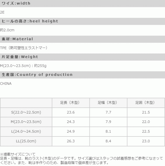 ※掲載サイズは、靴のラスト(木型)のデータです。