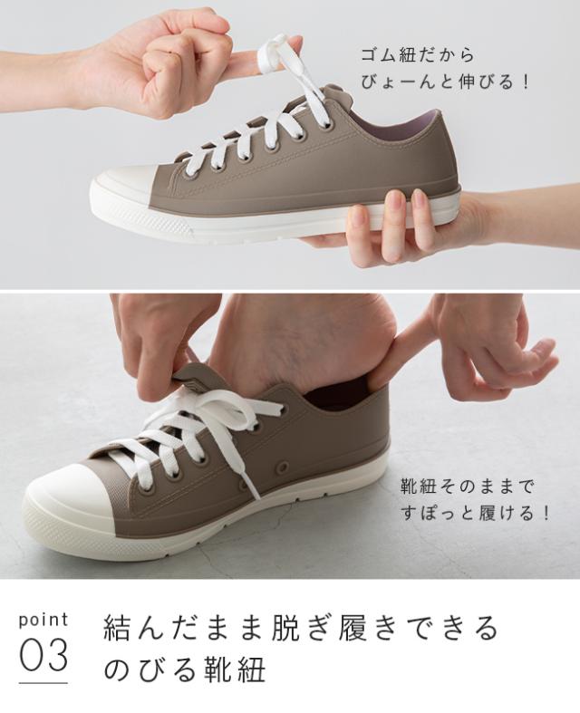 レインシューズ レイン フラットシューズ カジュアルシューズ レディース ラウンドトゥ ラウンド ローカットスニーカー スニーカー レインスニーカー 雨靴 長靴 ローカット フラットヒール フラット フラットソール ぺたんこ 完全防水 防水 ウォータープルーフ 低反発クッション 低反発 クッション ふわふわ 屈曲性 すべりにくい 痛くない 歩きやすい 疲れない 疲れにくい 大きいサイズ 小さいサイズ アウトドア キャンプ 山 川 雨 雨の日 梅雨 梅雨対策 おそろい お揃い リンクコーデ 親子 レジャー フェス 2cmヒール 2センチヒール ローヒール 2E 黒 ブラック 灰 グレー 肌色 ベージュ 青 ブルー S 22cm 22.5cm M 23cm 23.5cm 2L LL 25cm L 24.cm 24.5cm 春 夏 秋 冬 その他 moz モズ outletshoes アウトレットシューズ welleg ウェレッグ