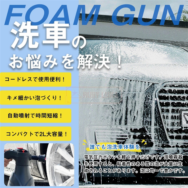 最安挑戦 冬新作 送料無料 新作 電動フォームガン 電動発泡スプレー 洗車フォームガン 高圧洗浄器 コンパクト 2L 大容量 霧吹き 噴霧器 電動スプレー USB充電式 蓄圧しなく噴霧器 電動 蓄圧式スプレー 車の泡の噴霧器 洗車用品 掃除用品