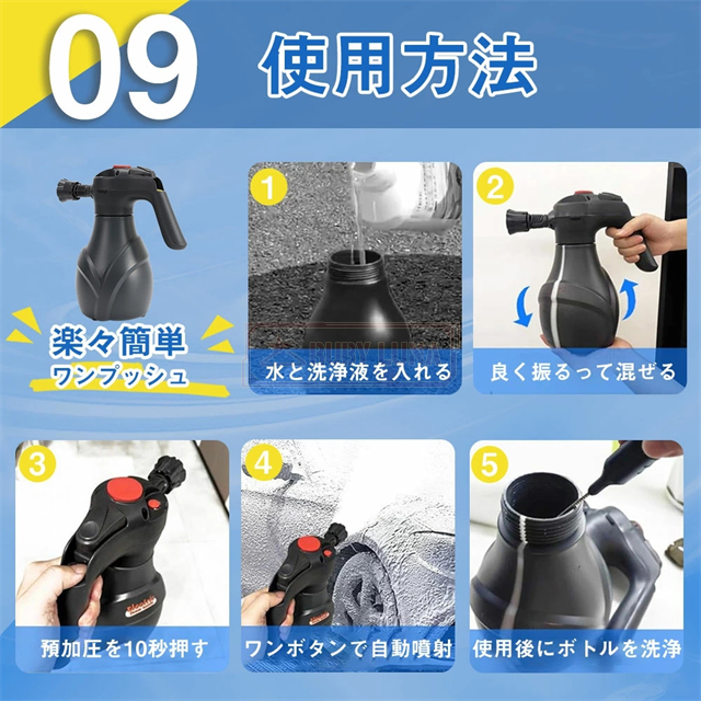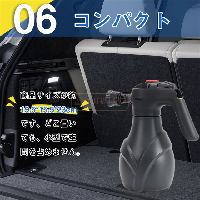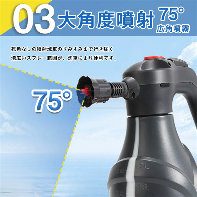 | 【持ち運びが簡単】 | ◆水と洗剤を適切な割合で混ぜるだけで、簡単に瞬時に泡を作ることができます。 ◆高圧洗浄機、フォームガン、庭のホースは必要なく、プラグも必要ないので、いつでもどこでも車を洗うことができます。 ◆あらゆるタイプのカークリーナー/高圧洗浄石鹸に適しています 。 |
