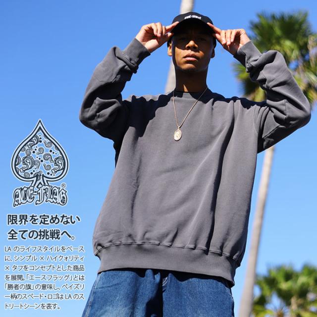 ACE FLAG トレーナー ブランド スケボー 長袖 スウェット 裏パイル メンズ 春秋冬用 黒 大きいサイズ エースフラッグ トップス シンプル 渋黒 黒渋 黒シブ シブ黒 ビッグシルエット b系 ヒップホップ ファッション ストリート系 ハイ 服 PGS-149