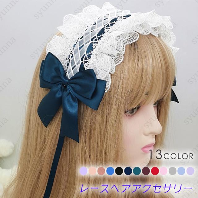 h14#ヘッドドレス ロリータ 日本国内当日発送 13color レース 髪飾り リボン カチューシャ ヘアアクセサリー ゴスロリ コスプレ お嬢さま ロリータ