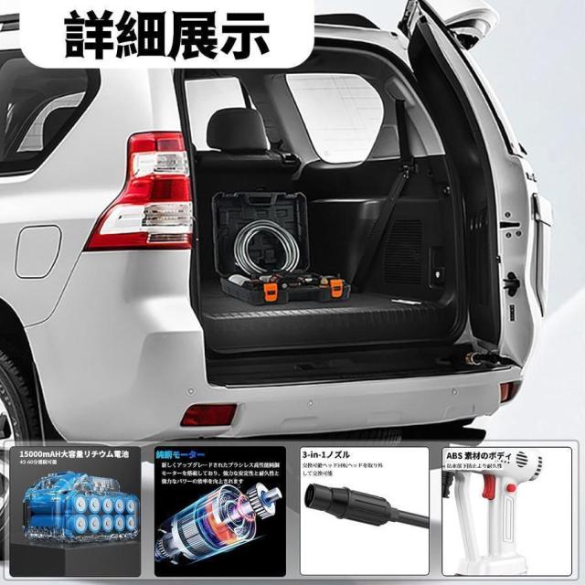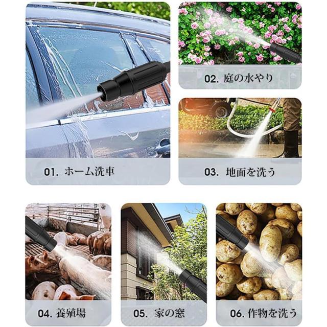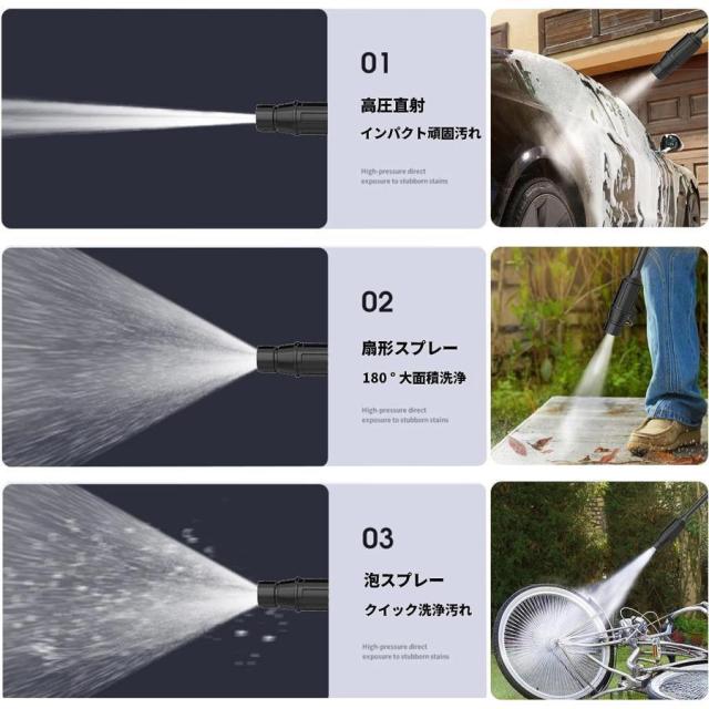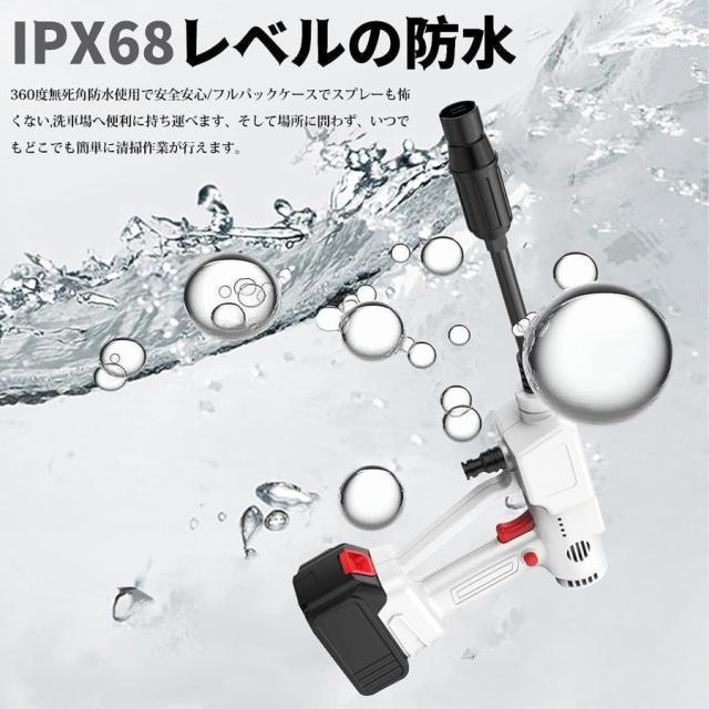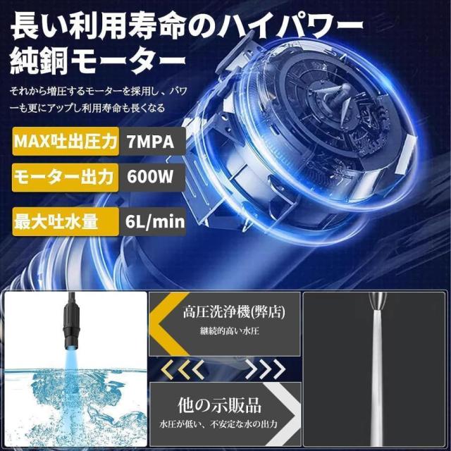 高圧洗浄機 コードレス 充電式 7MPa最大吐出圧力3種類噴射モード 水噴射量6L/min 21V 水圧洗浄機 自吸式 ポータブル 洗車機