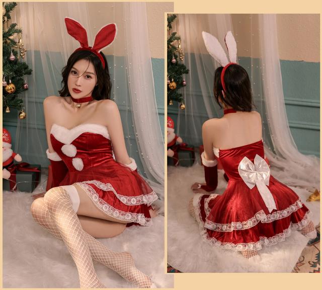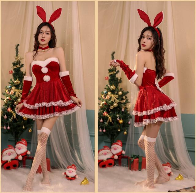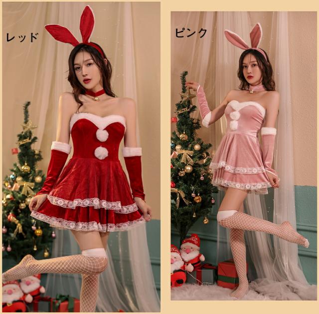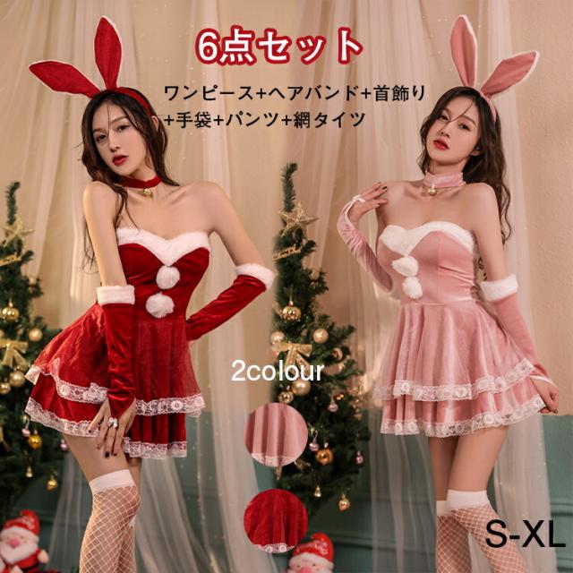 サンタ コスプレ セクシー 衣装6点セット可愛い 兎耳 ウサギ カチューシャ クリスマス サンタコス 大人用 コスプレ コスチューム レディース サンタクロース クリスマス 仮装