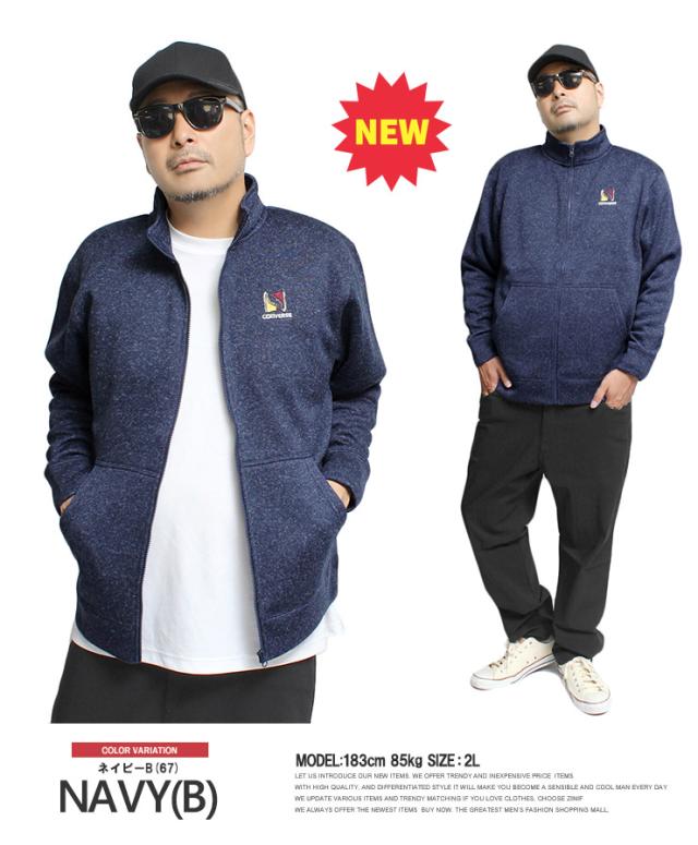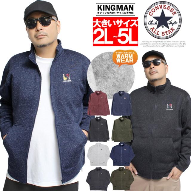 送料無料 コンバース CONVERSE スタンド ジャケット メンズ 大きいサイズ ニット フリース スウェット 裏起毛 プリント ジップアップ ブルゾン ハイネック スタンドジャケット フリースジャケット アウター あったか 防寒 暖かい ワークマン