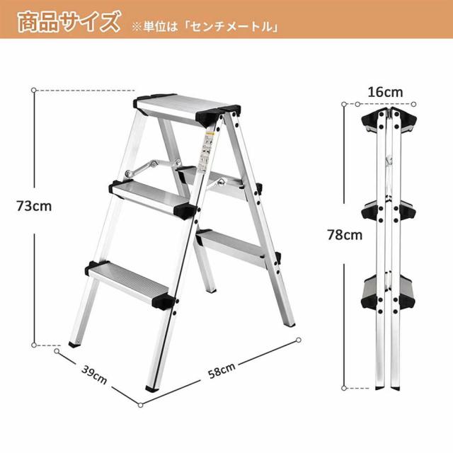 脚立3段 梯子 アルミ 脚立 折りたたみ ミニ 軽量 きゃたつ 踏み台 軽量 安全 ステップ アルミ 二段 脚立 折りたたみステップ 耐荷重150KG 滑り止め付き ステップ台 シルバー 三段