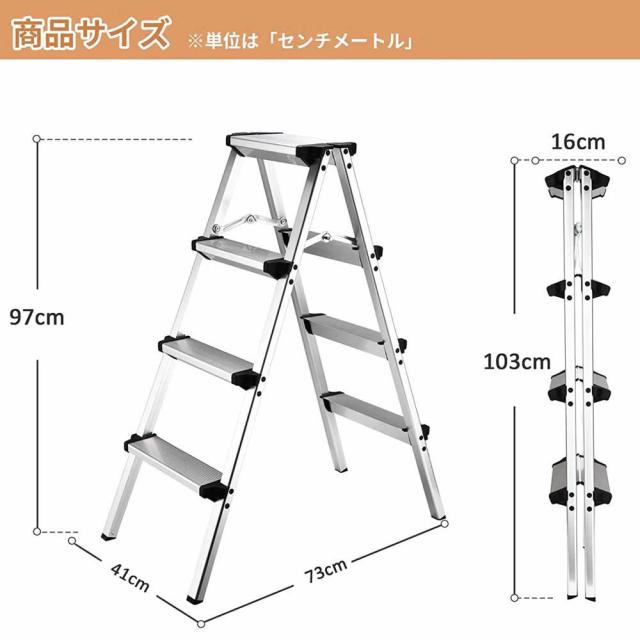 脚立4段 梯子 アルミ 脚立 折りたたみ ミニ 軽量 きゃたつ 踏み台 軽量 安全 ステップ アルミ 二段 脚立 折りたたみステップ 耐荷重150KG 滑り止め付き ステップ台 シルバー 4段