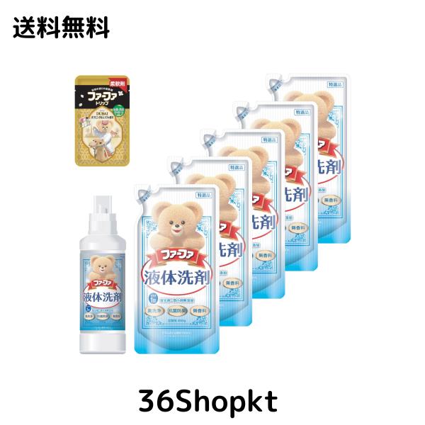 ファーファ 洗濯用 液体 洗剤 香り ひきたつ 無香料 本体 ( 500g ) 1個 + 詰替 ( 400g ) 5個 セット 柔軟剤 トリップ ドバイ オリエンタル ムスク の香り ワンパック (40ml) 付き