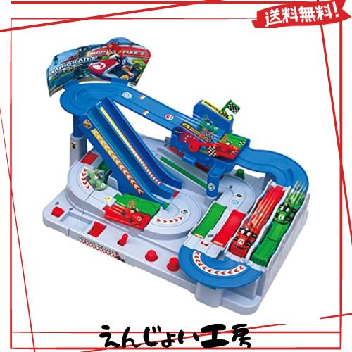 過去のボール転がしゲームから「マリオカートフィギュアを実際に走らせるレースゲーム」へ大進化! コミカルに走り回るカートの姿はビデオゲームの世界そのもの! 立体サーキットには6種類のアクションギミックとラップカウンターを搭載。重さの違う3種類のカートは走行性能が異なります。 ギミックとの相性を考えてカートを選んだり、ギミックの操作を極めたり、やり込み要素満点のアクションレースゲームです! もちろん電池不要。 本体A・B、レールA・B、ヒルクライム、バックストレート、カートフィギュア×4(マリオ、ルイージ、キノピオ、クッパ)、シール、ボード