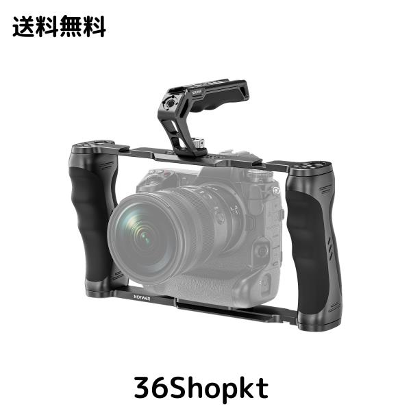 NEEWER 汎用型カメラケージ &トップハンドルセット 3/8”ARRI 位置決めピン付き ビデオリグカメラスタビライザー Arcaタイプベース デュア
