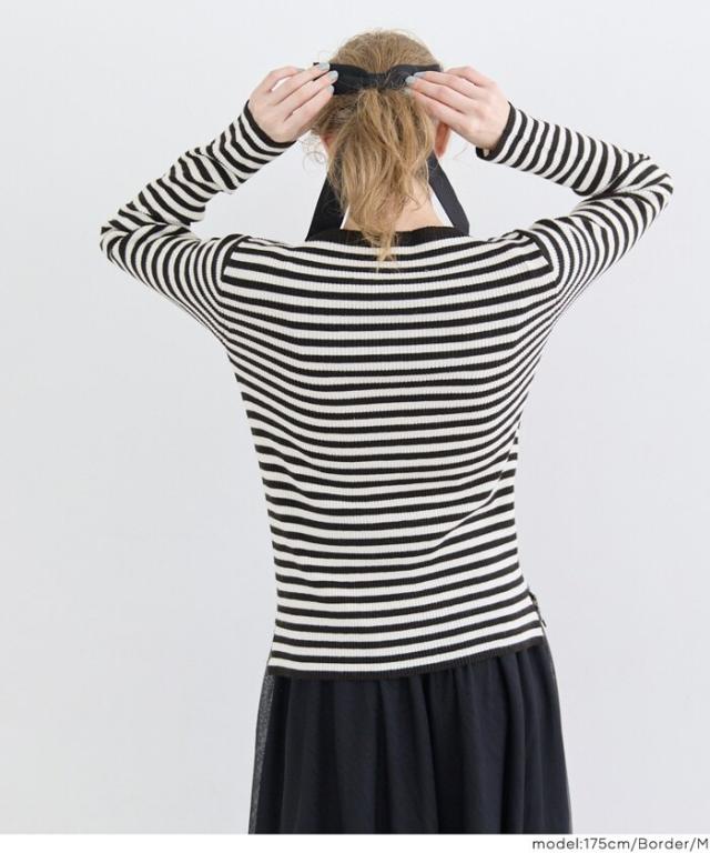 生地感:薄手のリブニット生地。