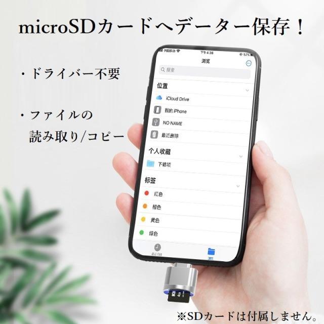Lightning to MicroSDカードリーダー 変換アダプター iPhone用 iPhone iPad iOS 13 外付け SDカード メモリーカード 写真 移動 動画 バックアップ PDF